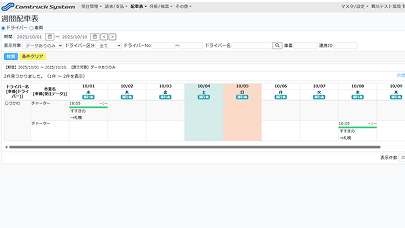 受注データをまとめて配車表の自動作成できます。日別/週別/月別の表示切り替えが可能。